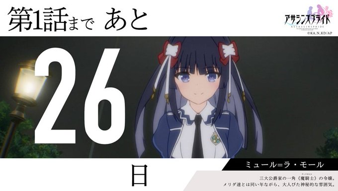 アニメ アサシンズプライド 公式 Bs日テレ再放送中 בטוויטר 定期 キャラクター紹介 ミュール 本日はミュールです ミュール ラ モール 三大公爵家の一角 魔騎士 の令嬢 メリダ達とは同い年ながら 大人びた神秘的な雰囲気 T Co